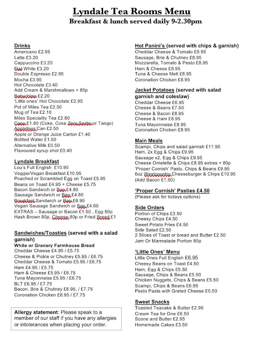 Lyndale Tea Rooms Menu